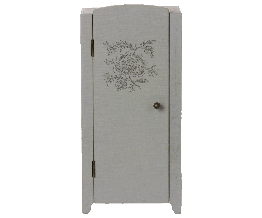Armadio Mini Grigio/Menta Un grazioso armadio in stile vintage con la sbarra appendi abiti e l’interno con tappezzeria fiorata. Grazioso e di stile come tutti gli arredi e accessori Maileg Dettagli: materiale: legno colore: grigio e menta misura: Mini dimensioni: 23 cm topolini acquistabili a parte marca: Maileg