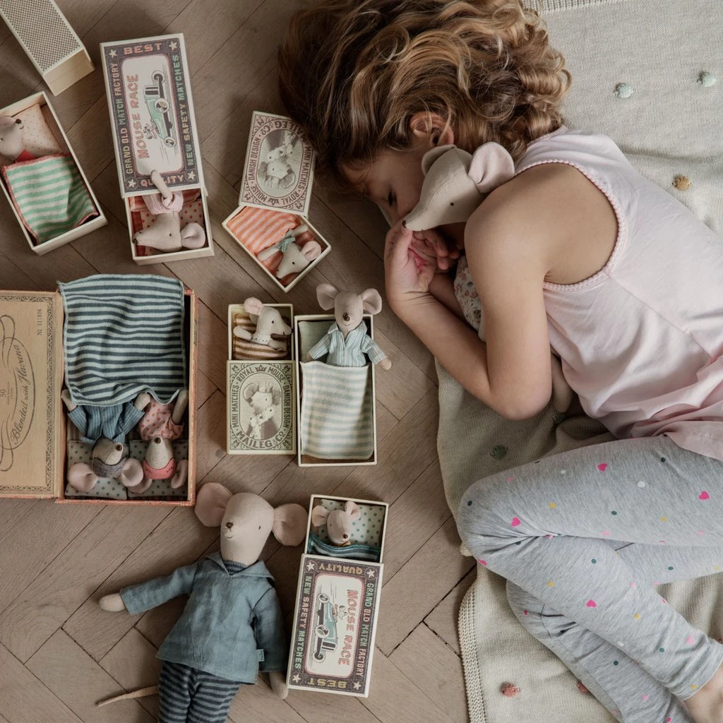 Founded in 1999, Maileg is a Danish toy brand founded by illustrator and designer Dorthe Mailil. Known for their imaginative, playful toy designs that range from mice in matchboxes, to giant bunnies, alongside all the accessories and clothing to dress up her creations. The designs skilfully blend the Scandinavian aesthetic with the tradition of animal soft toys, making Maileg so popular amongst children and their parents.