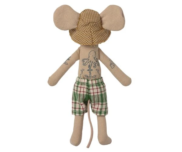 Size : Mother / Father mouse Height : 17,5 cm Age: All ages Washing instruction: 30 degrees Material: Cotton This mouse ia ready for a day at the beach, with all needed accessories and a beautiful striped beach house. By Maileg.