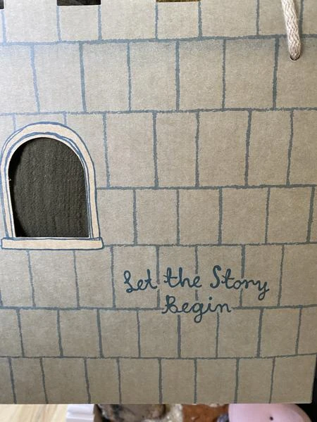 Maileg castle gift bag. Perforated door and a sweet little window. Perfect for carrying your favourite Maileg toys around. Or a useful storage bag. made from cardboard. 22 x 25 x 12cm