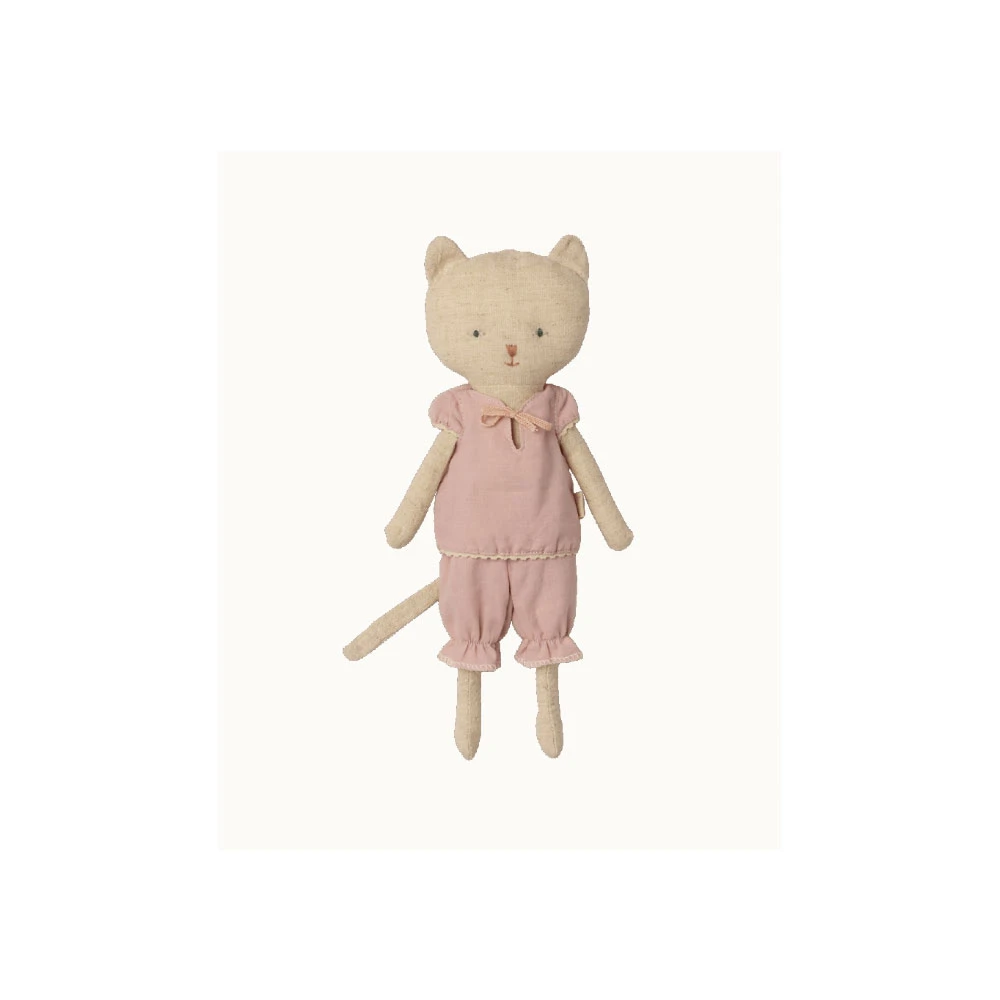 The kittens fit perfectly into a small hand so they are easy to bring on the go. It comes in nightclothes.