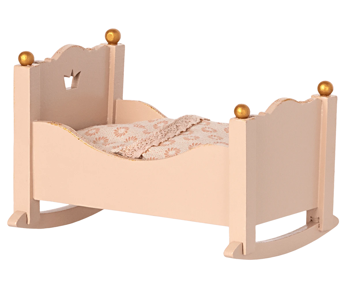Culla per topolini e coniglietti – Rosa Una culla in legno dal design principesco, viene fornita con un materasso e un morbido sacco a pelo. Si adatta perfettamente al castello di Maileg. Dettagli: materiale: metallo e cotone dimensioni: 9,5 x 6,5 cm misura: Mouse età consigliata: 3+ anni topolini e coniglietti acquistabili a parte marca: Maileg