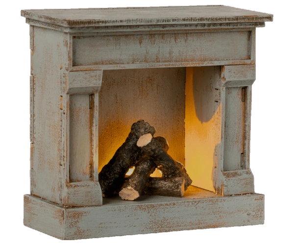 Use this wooden fireplace to warm your miniature home. It has an authentic look and a vintage finish. Remember to turn off the light when your friends go to bed. An adult can change the battery, which is non-rechargeable. Size: Mini Height: 8.5cm Width: 8.5cm Wash: Surface Wash Materials: FSC Wood Age: 3+