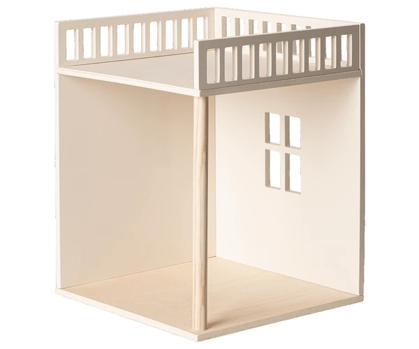 Maileg: The bonus room is for your free imagination. You can add it to the dollhouse anywhere you like. It is up to you what the use of the bonus room should be. Maybe a garage, an extra room for friends, fitness room – your choice Item No.: 11-9003-01 Height: 38 in. Width: 29 in. Recommended age: +3 Year Wash: Surface wash Material: FSC Wood