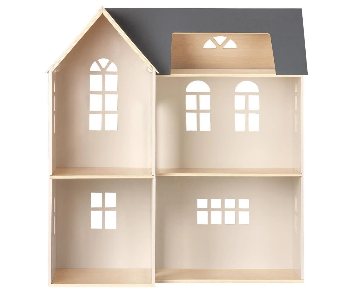 Exclusive wooden dollhouse. Perfect for mice, bunnies and all your Maileg friends. Personalize with your favorite Maileg furniture. Comes flat packed and is easy to assemble. Assembled size 80x40x72 cm (hxdxw) – comes without furniture. Height : 80 cm Age: 3 years & up Washing instruction: Surface wash Material: FSC Wood