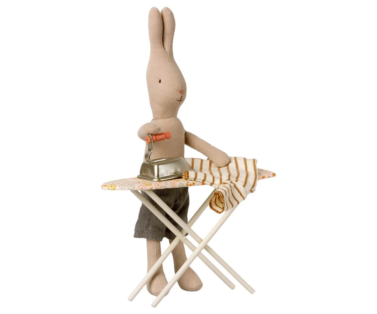 Every respective household has an iron board and an iron in the laundry room. This will make the play even more real and authentic. The set is made in metal and the iron board is covered with unique Maileg fabric.