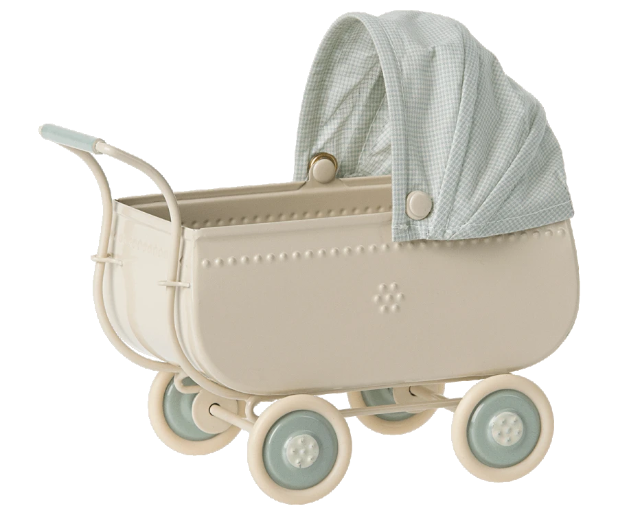 Un beau landau au look vintage exclusif. La partie métallique a des détails en relief sur les côtés et la couverture en tissu complète le look. La literie moelleuse est parfaite pour une sieste. Ce produit unique est en partie fait à la main, c’est pourquoi des variations peuvent survenir. 10 x 15 cm.