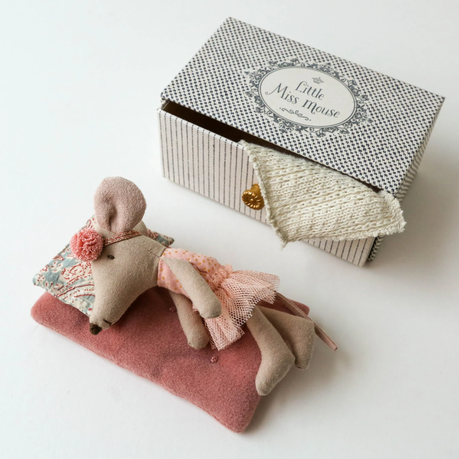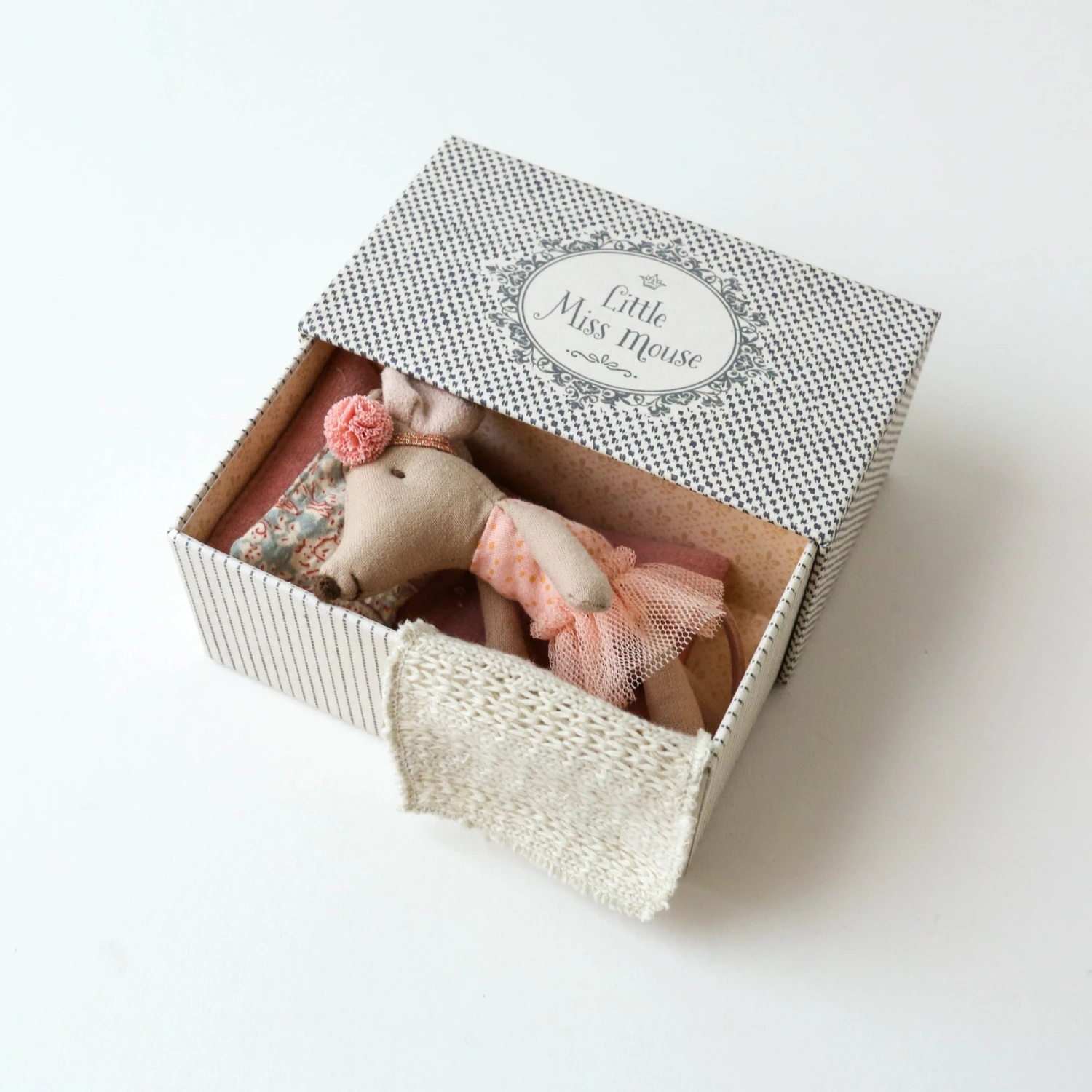 It is important to have a place to rest after a dance lesson. This little mouse comes in a beautiful box that can be used as a day bed. Maileg is a brand of charming Danish-designed toys created to inspire our children’s favorite playtime stories. By bringing storybook whimsy to everyday moments, Maileg toys help children explore the pure and simple wonder of imagination. Beloved for their heartwarming personalities, Maileg toys show playfulness and charm in every last detail. Theirs is a timeless world filled with beautiful accessories and settings to be collected, cherished and shared with friends and family for generations. Size: Little sister/brother Height: 11 cm Age: All ages Recommended Agegroup: +3 Year Wash: 30°C Material: Cotton/Polyester Filling: Recycled polyester