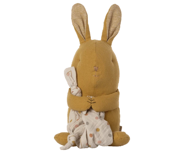 These sweet Maileg animals have a soft cuddle cloth and will play a calm lullaby when you pull the tail. Made in soft fabrics with unique prints and packed in a beautiful gift box they make for the most wonderful new baby gift. DETAILS A choice of three animals: Elephant, Rabbit and Pig Height:32 cm Suitable for all ages Wash:30°C Material:Cotton/Linen Filling:Recycled polyester/Pe Pellets WHAT WE LOVE Founded by mother and designer Dorthe Mailil, Maileg has become our go to brand of toys that merge modern Scandinavian design with storybook whimsy and meticulous attention to detail.