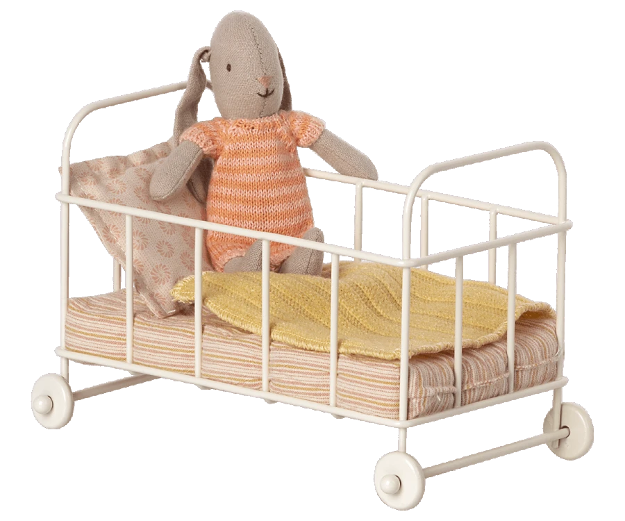 A cosy cot bed for you to tuck your little friends into after a long day of play. This gorgeous piece is the perfect addition to any growing Maileg collection. Made from metal with cotton bedding, it is a perfect fit for small mice or any of the Micro collection. Height- 10cm. Width- 16cm. Materials- Metal, Cotton, Polyester filling. Not suitable for children under 36mths.