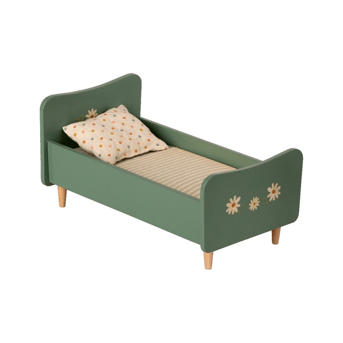 A wooden bed that fits bunnies and rabbits in size 1 and 2 perfectly. Beautiful handpainted details on the bed – variation may occur. Soft bedlinen, made in unique fabrics, will keep the soft friends warm all night.