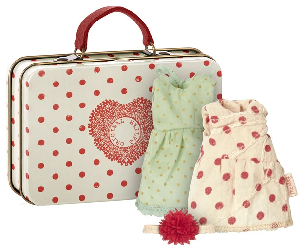 Mouse suitcase with 2 sets of clothes by Maileg.