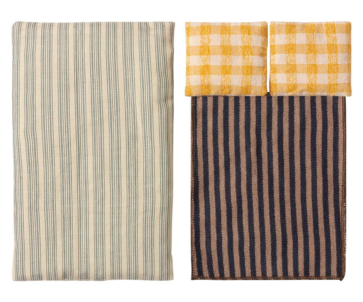 A classic Maileg item. Mum and Dad mice are wearing their beautiful nightwear and eye masks. The cigarbox is a perfect bed for a good night’s sleep and sweet dreams. Bedlinen may vary in colour. Product details Size : Mother / Father mouse Height: 17 cm Age: All Ages Washing instruction: 30 degrees Material: Cotton Maileg (pronounced My’lye) is a brand of charming Danish-designed toys created to inspire our children’s favourite playtime stories. By bringing storybook whimsy to everyday moments, Maileg toys help children explore the pure and simple wonder of imagination. Beloved for their heartwarming personalities, Maileg toys show playfulness and charm in every last detail. Theirs is a timeless world filled with beautiful accessories and settings to be collected, cherished and shared with friends and family for generations.