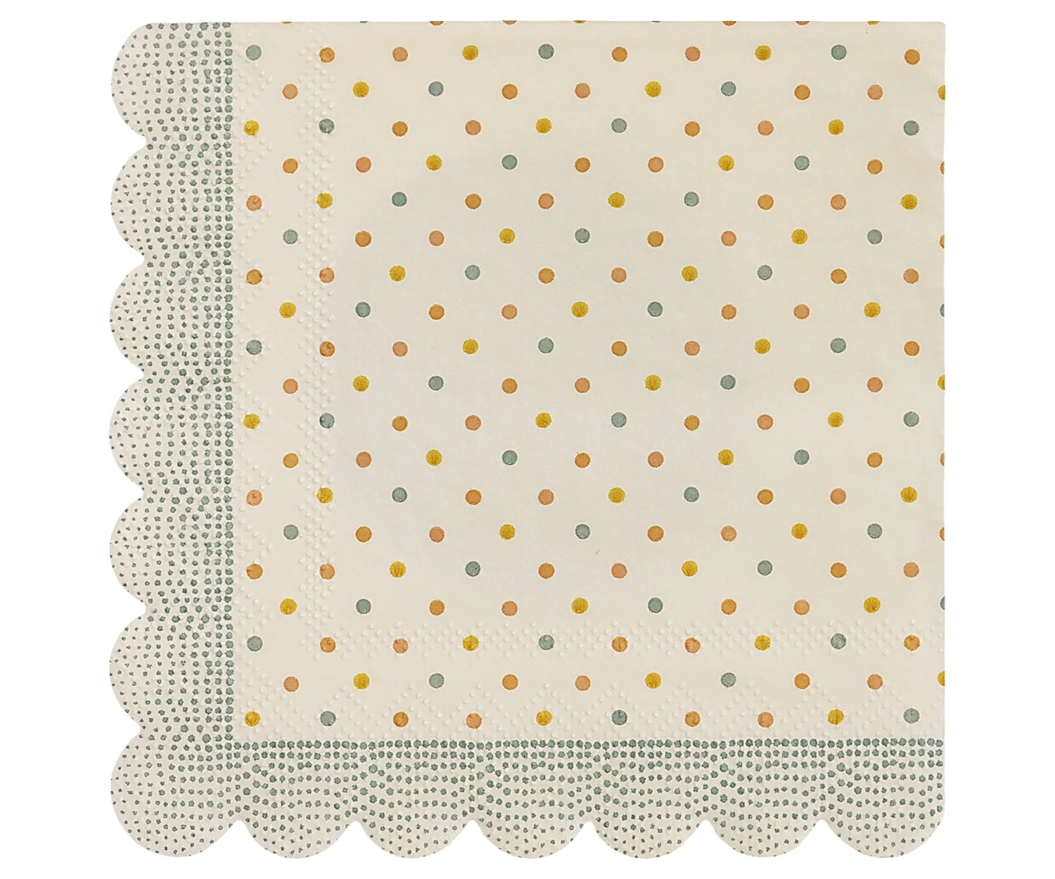 Decorate a beautiful table with these paper napkins made with a colorful dotted print. Mix and match it with ofther Maileg napkins for a personal touch. A pack contains 16 napkins. Product details Size: n/a Height: 12 cm Width: 12 cm Age: Decoration only Wash: n/a Material: FSC Paper Maileg (pronounced My’lye) is a brand of charming Danish-designed toys created to inspire our children’s favourite playtime stories. By bringing storybook whimsy to everyday moments, Maileg toys help children explore the pure and simple wonder of imagination. Beloved for their heartwarming personalities, Maileg toys show playfulness and charm in every last detail. Theirs is a timeless world filled with beautiful accessories and settings to be collected, cherished and shared with friends and family for generations.
