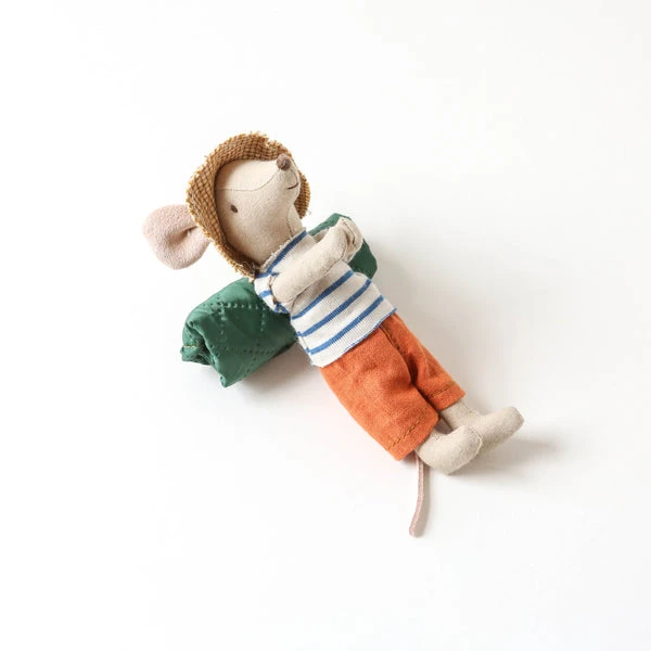 This mouse is well-prepared for a hiking trip in the wild nature. He is dressed for days of walking and brings his sleeping bag for the nights under the stars. This style has magnets in his hands. Maileg is a brand of charming Danish-designed toys created to inspire our children’s favourite playtime stories. By bringing storybook whimsy to everyday moments, Maileg toys help children explore the pure and simple wonder of imagination. Beloved for their heartwarming personalities, Maileg toys show playfulness and charm in every last detail. There is a timeless world filled with beautiful accessories and settings to be collected, cherished and shared with friends and family for generations. Size: Big sister/ brother Height: 12 cm Width: 4 cm Age: 3 YR + Wash: 30°C Material: Cotton Filling: Recycled polyester/Pe Pellets