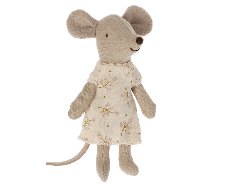 Dress your little sister mouse for a good night`s sleep or a cosy pyjamas party with this night gown. Size: Little sister/brother Height: 6 cm Age: +3 Year Wash: 30°C Material: Cotton