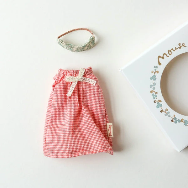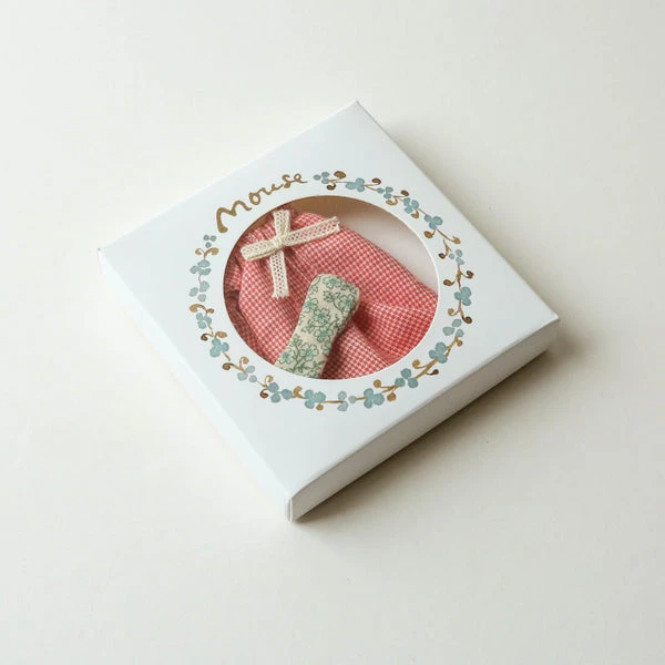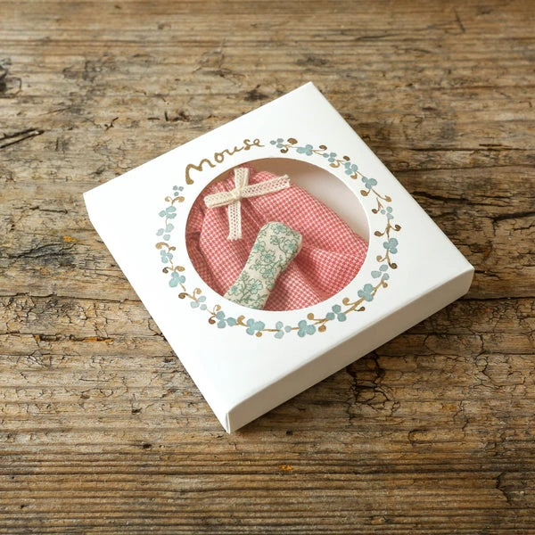 A soft nightgown and an eye mask that will keep the light out will ensure a good night’s sleep. This set fits mice size mum and dad perfectly. Maileg is a brand of charming Danish-designed toys created to inspire our children’s favourite playtime stories. By bringing storybook whimsy to everyday moments, Maileg toys help children explore the pure and simple wonder of imagination. Beloved for their heartwarming personalities, Maileg toys show playfulness and charm in every last detail. There is a timeless world filled with beautiful accessories and settings to be collected, cherished and shared with friends and family for generations. Size: Mother/Father mouse Height: 8 cm Recommended age: +3 Year Wash: 30°C Material: Cotton