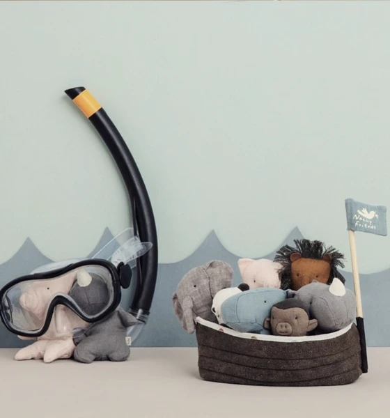This charming toy by Maileg will entertain an infant for hours. A cute little boat filled with three adorable animal characters made with soft fabrics. They are sure to cherish it forever. 22 cm Material: Linen Wash toys at 30 degrees