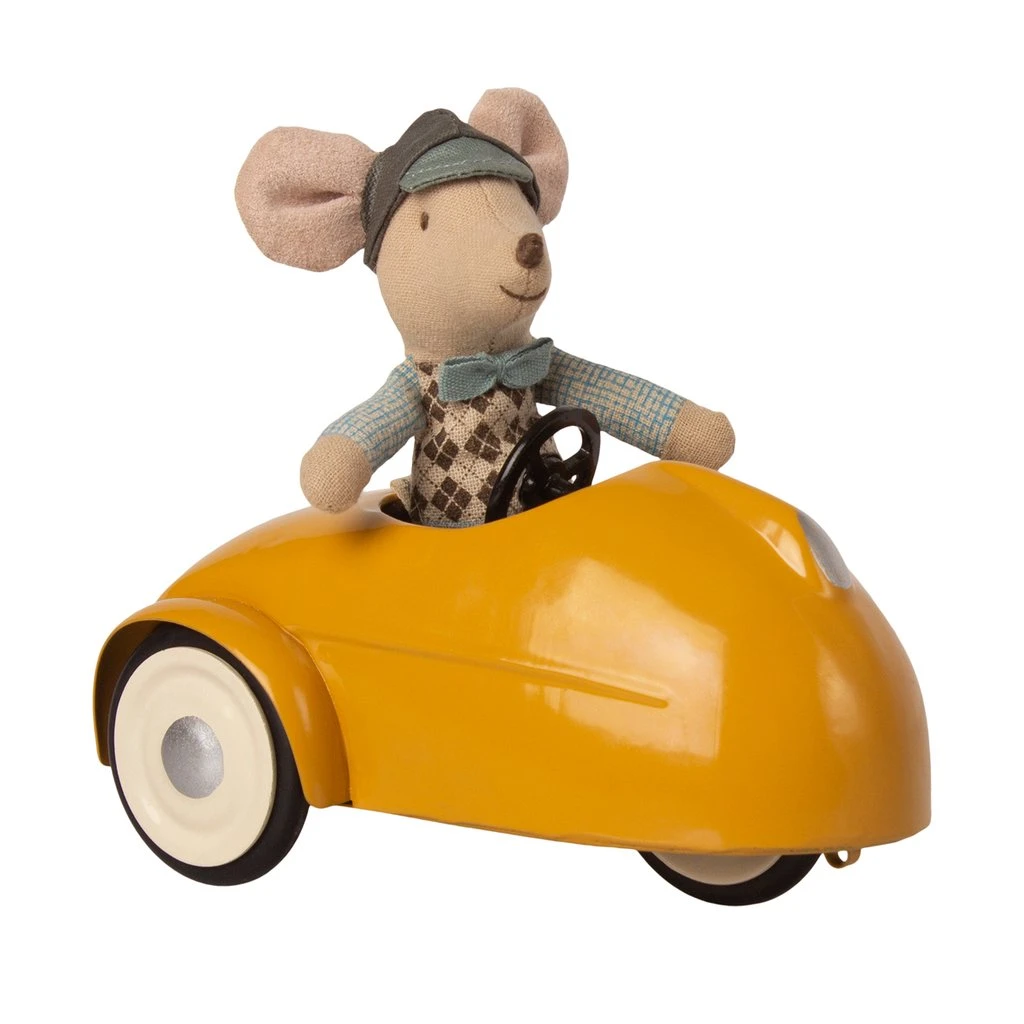 El coche de época, de metal está muy bien decorado y viene en 2 colores. El asiento es suave y hará que el viaje sea cómodo para el ratoncito. Después de cada viaje, el coche se puede aparcar en el garaje. Un juego de 3 piezas para cualquier niño.