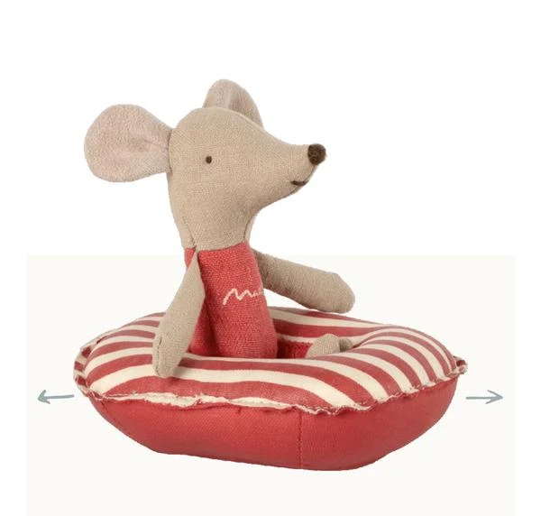 Vacation time. A small boat made in coated fabric for an authentic look. It is not water proof, so only play on dry ground… only in your imagination it can float on water. This set fits mice in size little brother/sister and baby. Item No.: 11-1403-01 Size: Little sister/brother Height: 3 cm Width: 10 cm Age: 3 YR + Wash: 30°C Material: Cotton Filling: Polyester
