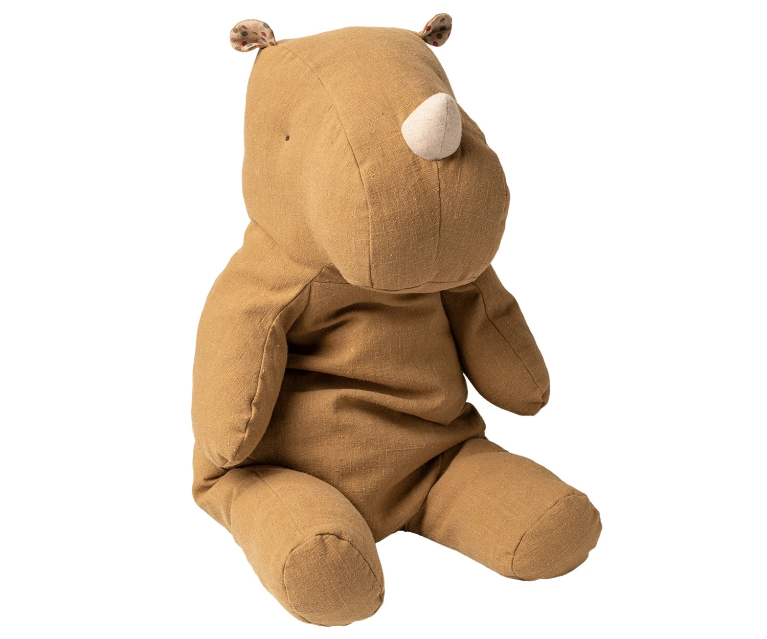 This large rhino soft toy, in umber, is part of the Safari Friends Collection by Maileg. Safari Friends are made of the softest linen and come in great colors. They give the best hug and can sit up by themselves because of the beans in the bottom. Product details Size: Large Height : 60 cm Age: All ages Washing instruction: 30 degrees Material: Cotton / Ramie Maileg (pronounced My’lye) is a brand of charming Danish-designed toys created to inspire our children’s favourite playtime stories. By bringing storybook whimsy to everyday moments, Maileg toys help children explore the pure and simple wonder of imagination. Beloved for their heartwarming personalities, Maileg toys show playfulness and charm in every last detail. Theirs is a timeless world filled with beautiful accessories and settings to be collected, cherished and shared with friends and family for generations.
