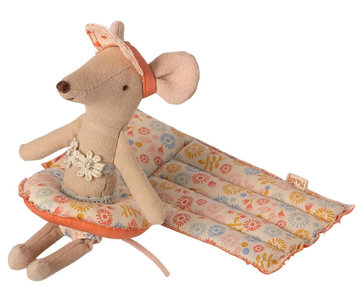 Salvagente per Topolini Fiorellini E’ giunto il momento delle vacanze anche per i topolini! Dettagli: materiale: cotone NB: topolini non inclusi altezza 1,5 cm marca: Maileg