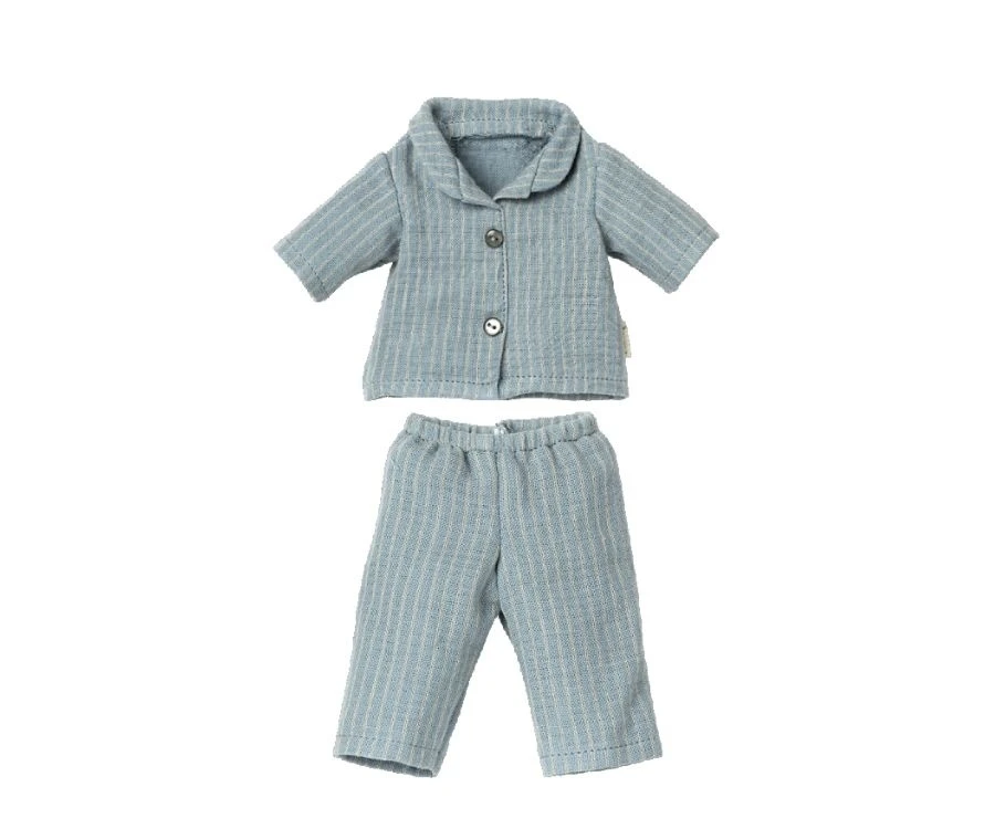 Auch für Papa Teddy ist es nach einem langen Arbeitstag Zeit ins Bett zu gehen. Da darf natürlich der Schlafanzug nicht fehlen. Ein schönes Abendritual für Kleine wenn Kind und Teddy gemeinsam den Schlafanzug anziehen bevor sie in ihre Betten gehen. Den Pyjama gibt es natürlich auch passend für den Teddy Junior und du kannst ihn ebenso wie den Teddy extra bestellen. Abmessung: ca. 21 cm passend für Teddy Papa Material: Baumwolle Farbe: Hellblau Creme Lieferung in einer kleinen Kartonverpackung ohne abgebildetes Zubehör.