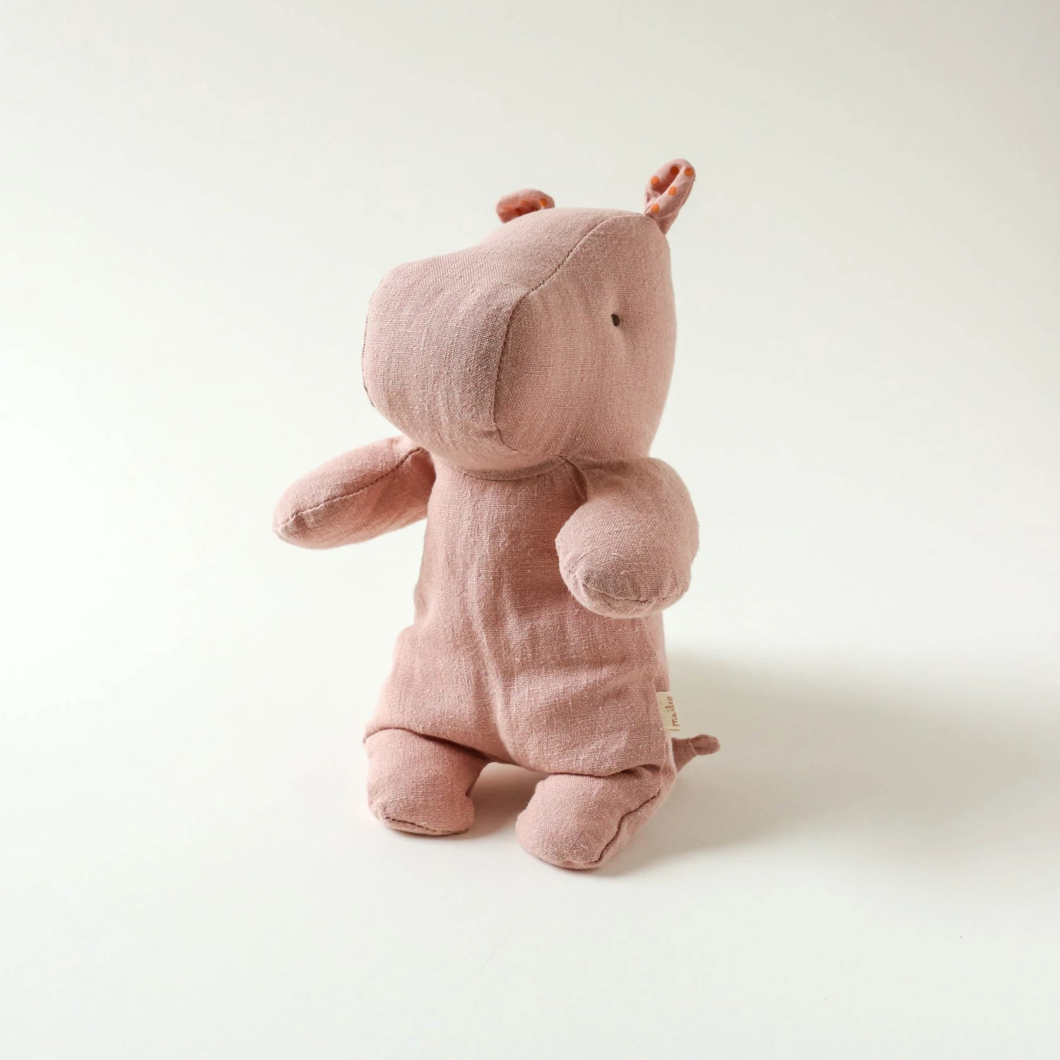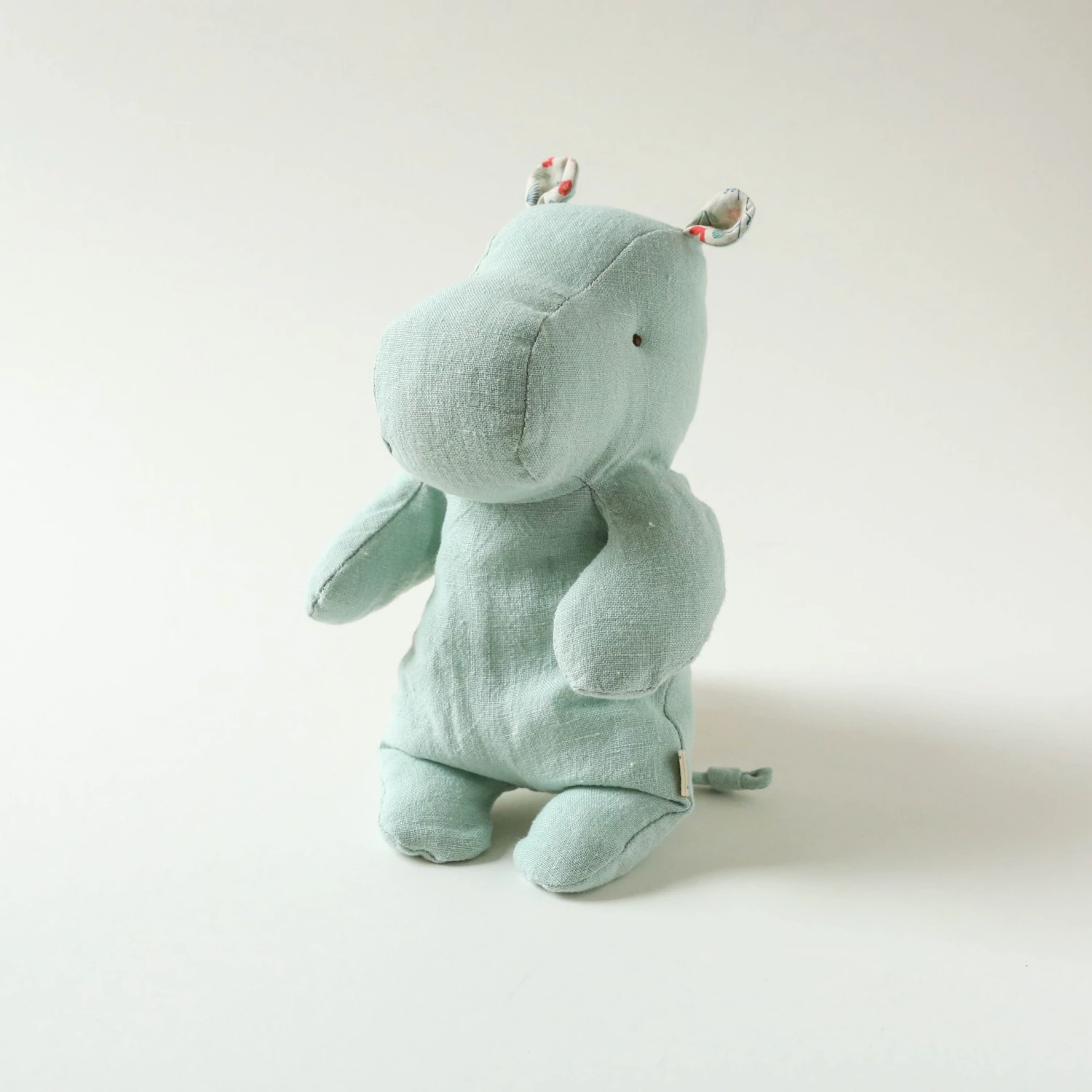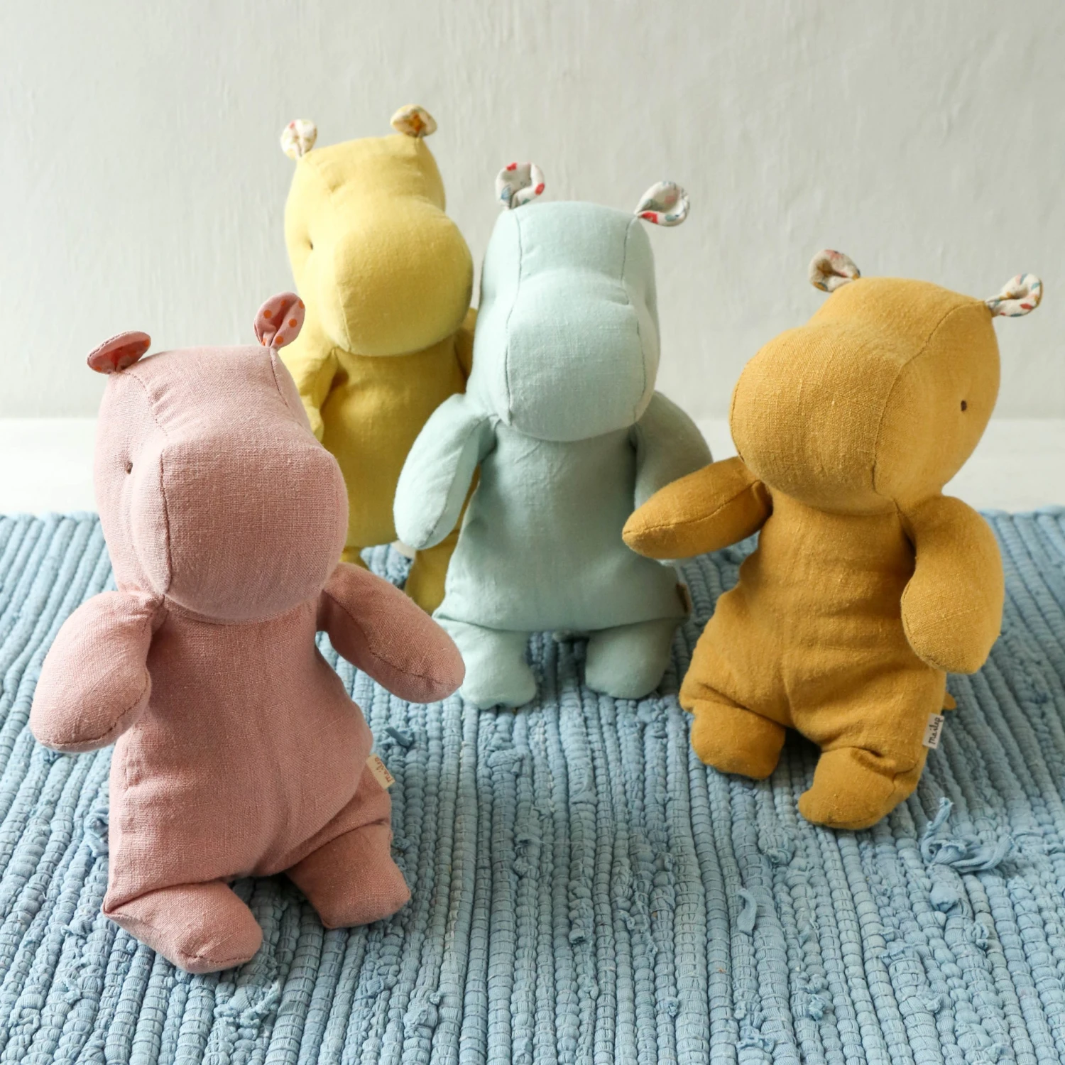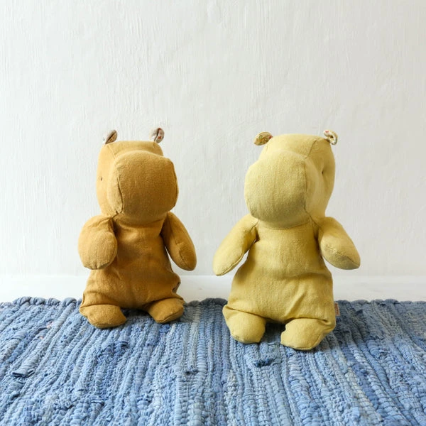 These hippos are made of the softest linen, give the best hugs imaginable, and can sit all by themselves! Maileg is a brand of charming Danish-designed toys created to inspire our children’s favorite playtime stories. By bringing storybook whimsy to everyday moments, Maileg toys help children explore the pure and simple wonder of imagination. Beloved for their heartwarming personalities, Maileg toys show playfulness and charm in every last detail. Theirs is a timeless world filled with beautiful accessories and settings to be collected, cherished and shared with friends and family for generations. 22cm high All ages Materials: Linen, Ramie & Cotton Filling: Polyester Wash at 30°C