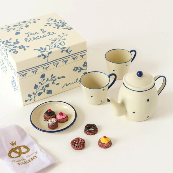 Don’t forget your afternoon tea. A short break to have a little talk, a cup of tea and a biscuit with your best Maileg friend. Maileg is a brand of charming Danish-designed toys created to inspire our children’s favorite playtime stories. By bringing storybook whimsy to everyday moments, Maileg toys help children explore the pure and simple wonder of imagination. Beloved for their heartwarming personalities, Maileg toys show playfulness and charm in every last detail. Theirs is a timeless world filled with beautiful accessories and settings to be collected, cherished and shared with friends and family for generations. Size: – Height: 5 cm Age: 3 YR + Wash: Surface wash Material: Metal/Polyresin