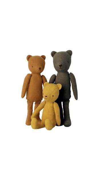 TEDDY MUM The Teddy bear family is a sweet collection of 3 different sizes of Teddy bears. They are made of soft linen and has a vintage look that will make the memories pop up. Product details Size : Teddy mum Height : 22 cm Age: All ages Washing instruction: 30 degrees Material: Linen