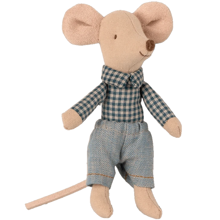 Topolino Fratello Minore Ecco un fratello minore della serie topolini Maileg. Ricco di dettagli, con una bella camicia a quadri e il suo pantalone jens. Collezionalo con tutti gli altri personaggi, per avere tutta la famiglia al completo. Dettagli: materiale: cotone dimensioni: 10 cm marca: Maileg