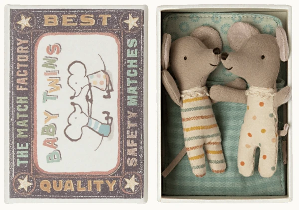 Only one thing is more fantastic than having a baby, it is if you get two of them – twins. These mice sleep safe in their sleeping bag in a matchbox bed side by side.