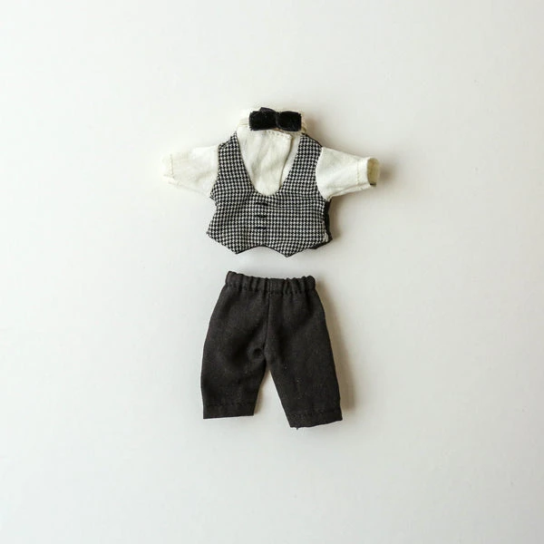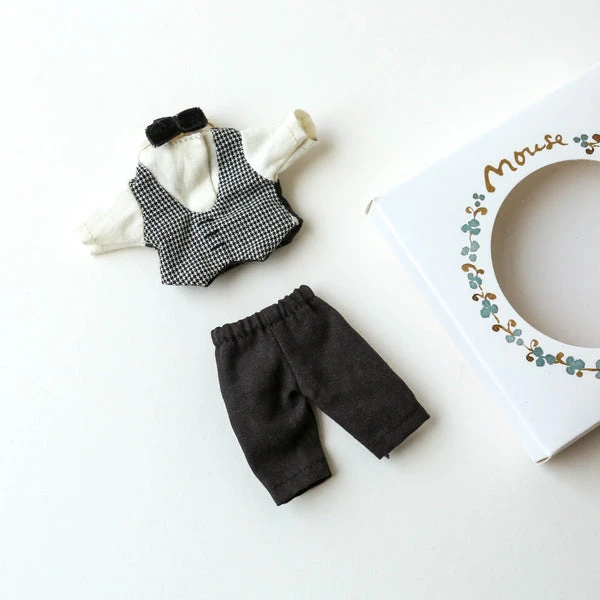 A classic set of clothes for a waiter including a shirt with vest, a bow and a pair of pants. This set fits all mice in size of big brother and sister perfectly. Maileg is a brand of charming Danish-designed toys created to inspire our children’s favorite playtime stories. By bringing storybook whimsy to everyday moments, Maileg toys help children explore the pure and simple wonder of imagination. Beloved for their heartwarming personalities, Maileg toys show playfulness and charm in every last detail. Theirs is a timeless world filled with beautiful accessories and settings to be collected, cherished and shared with friends and family for generations. Size: Big sister/ brother Height: 9 cm Age: 3 YR + Wash: 30°C Material: Cotton Filling: –