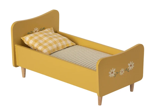 A wooden bed that fits bunnies and rabbits in size 1 and 2 perfectly. Beautiful handpainted details on the bed – variation may occur. Soft bedlinen, made in unique fabrics, will keep the soft friends warm all night.