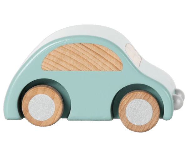 Little wooden car made from solid FSC wood and has a pull-back function. Suitable from 3 years and up Height 4cm x length 9cm Surface clean
